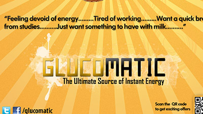 Designed this poster advertisement for marketing the hypothetical biscuit called Glucomatic.