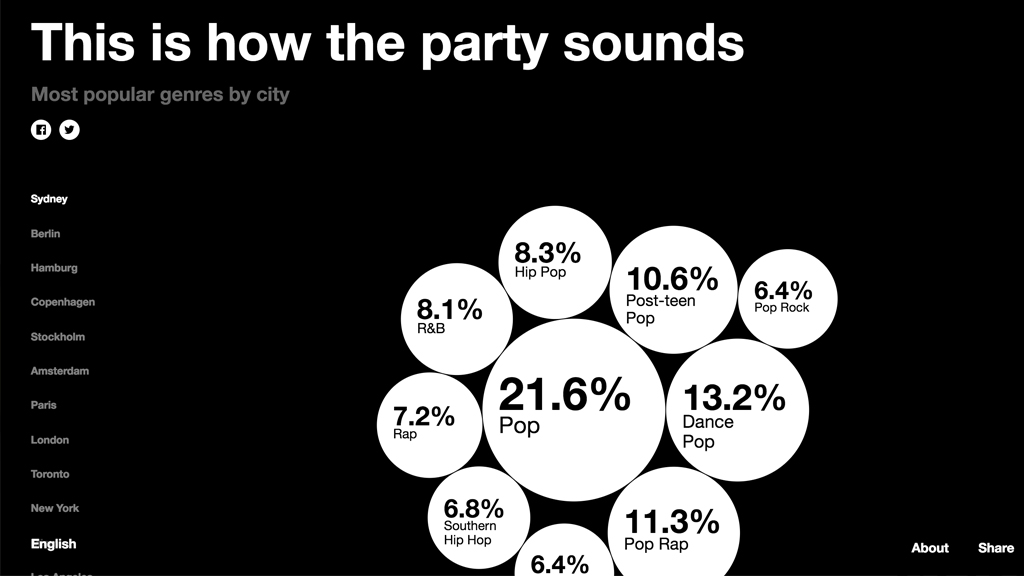 Developed an interactive data visualization for a Spotify and Sonos holiday marketing campaign.