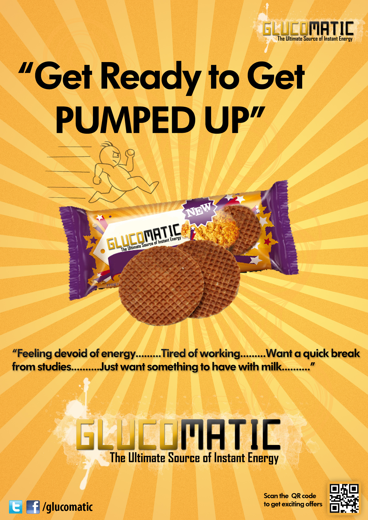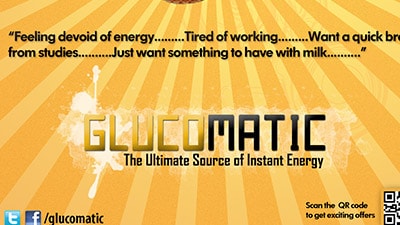 Designed this poster advertisement for marketing the hypothetical biscuit called Glucomatic.