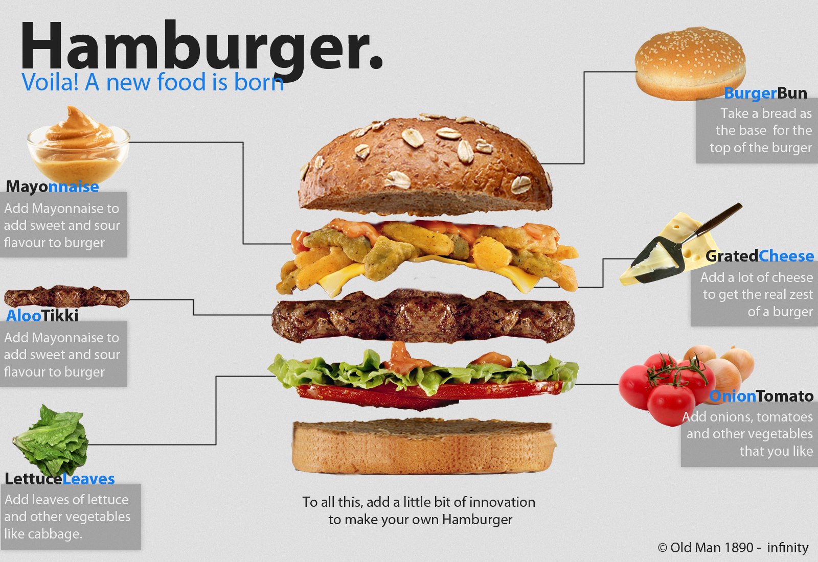 Designed this minimal inforgraphic on hamburgers during an inter school competition using the limited images provided.